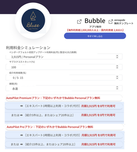 ※Bubbleエキスパートサービスとプランはバーターとなります